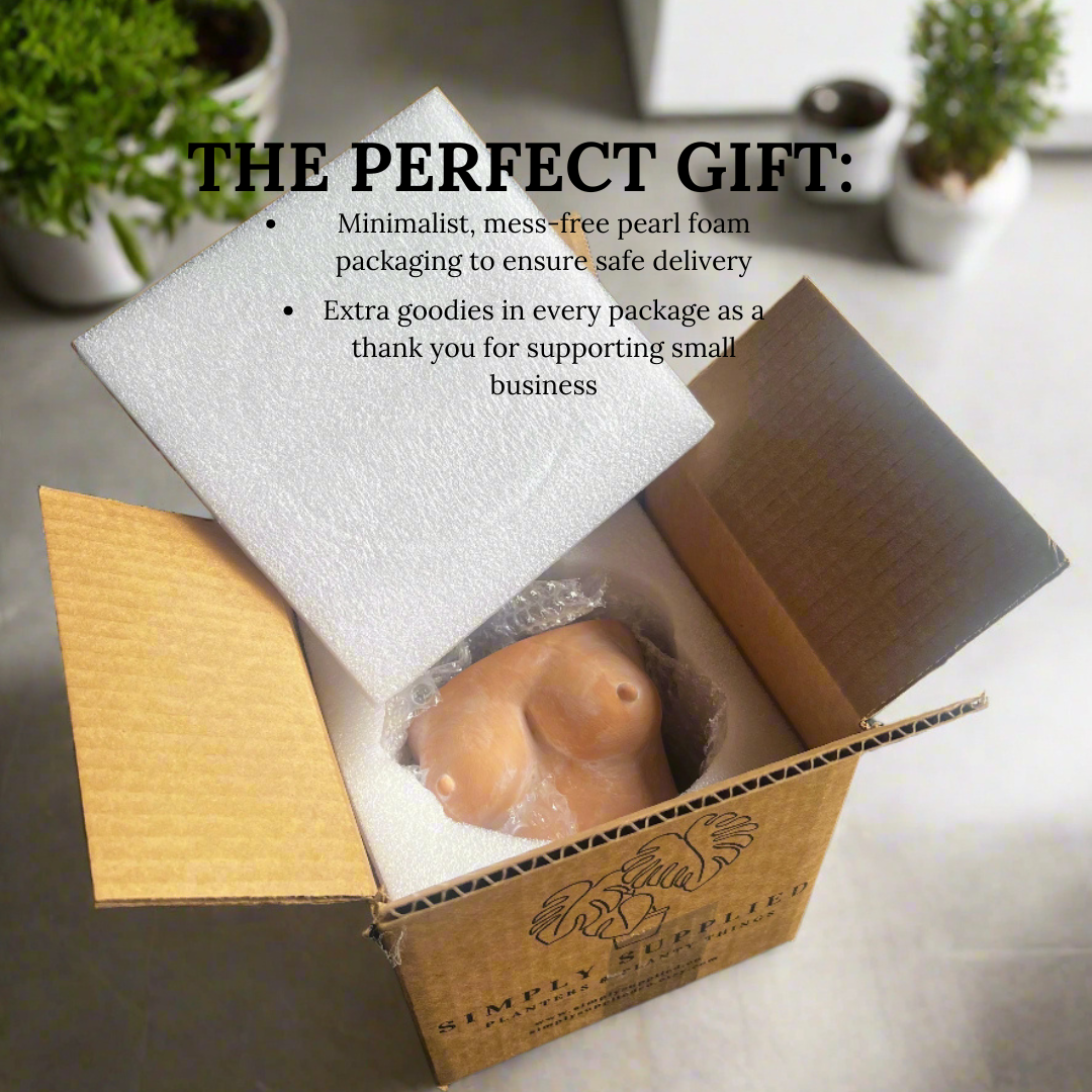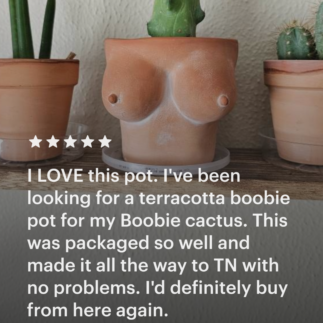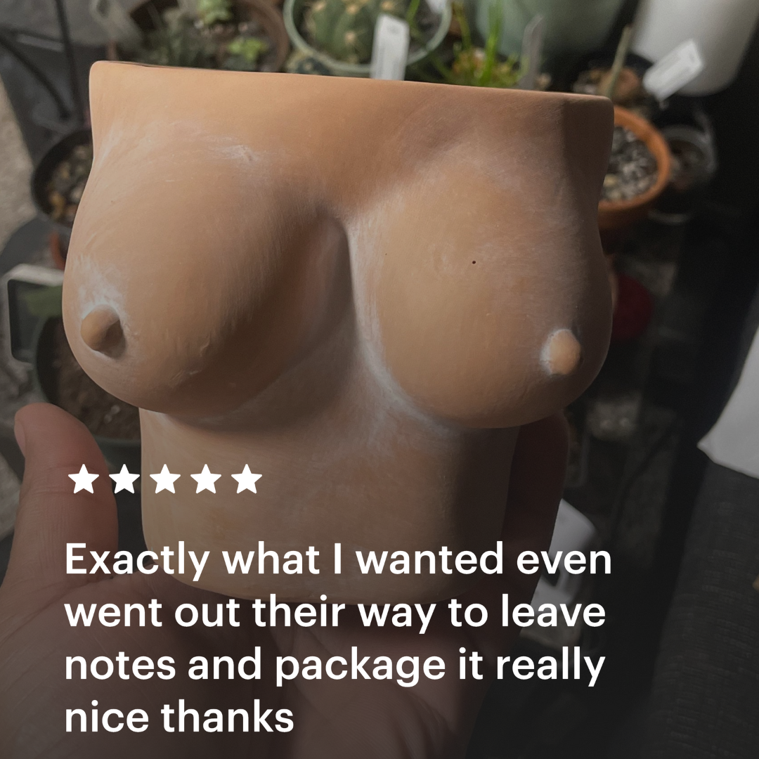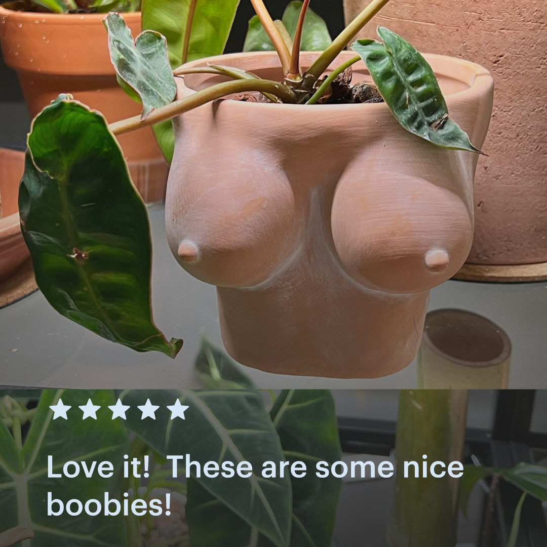 "absolutely the most adorable and well-crafted quality planters! Fast delivery, too! can't wait to get the perfect plant for the boobie and butt pots. Could not recommend more! WILL buy from again!"