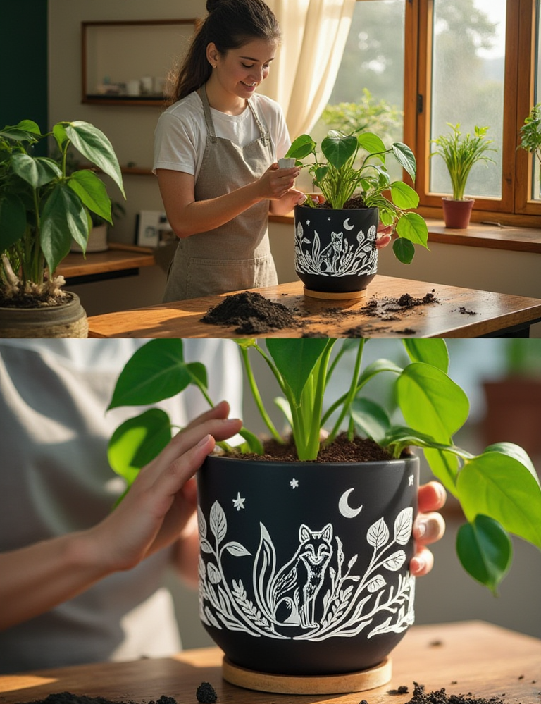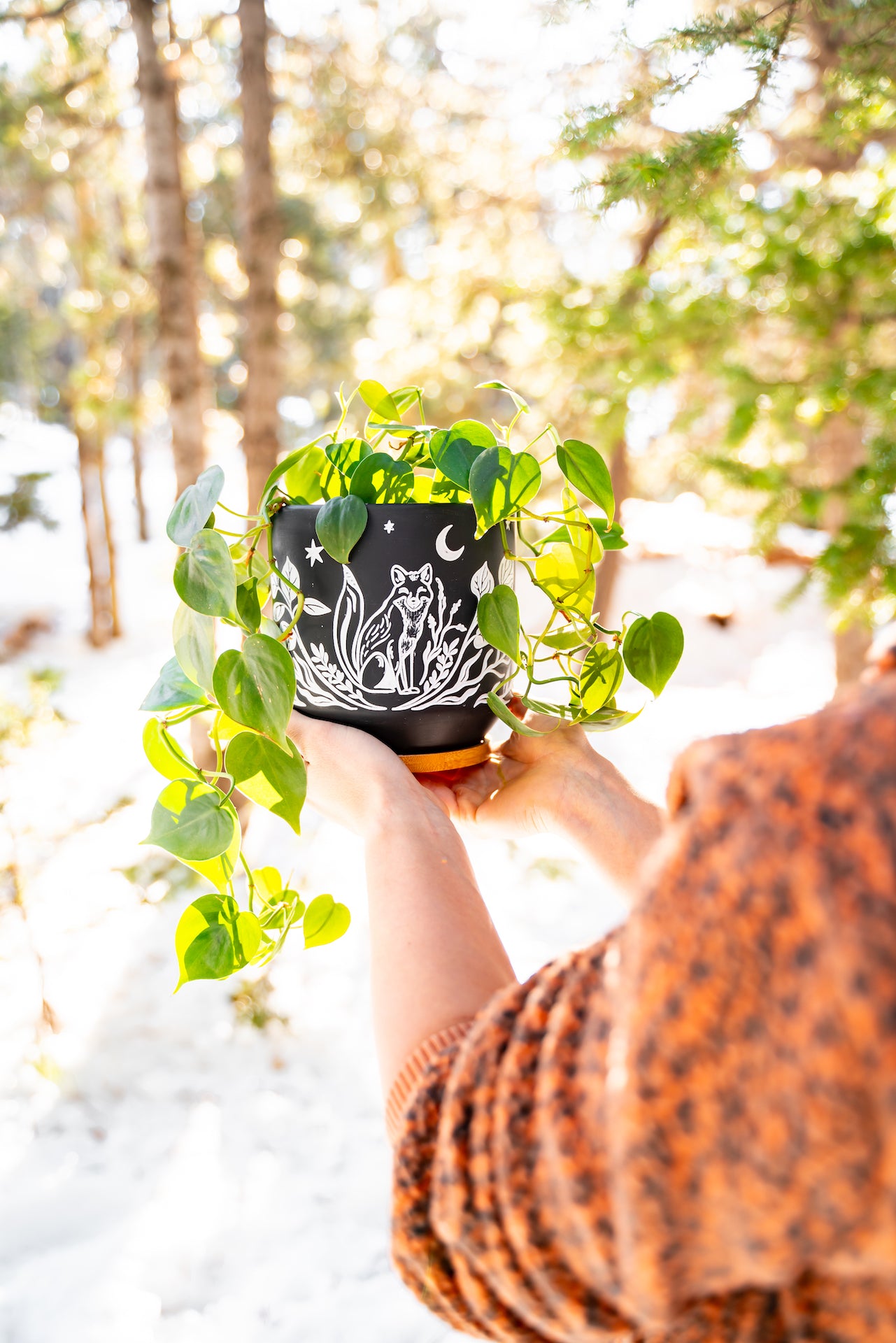 🪴 Crafted from terracotta clay, this planter is exceptionally sturdy, weighing nearly three pounds. It’s painted in a blackout finish and sealed for durability.